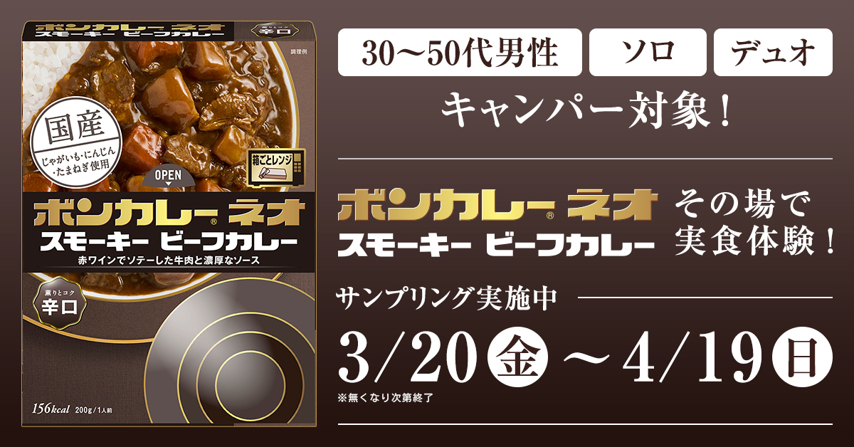 30〜50代男性キャンパー対象ボンカレーネオキャンペーン